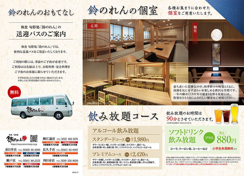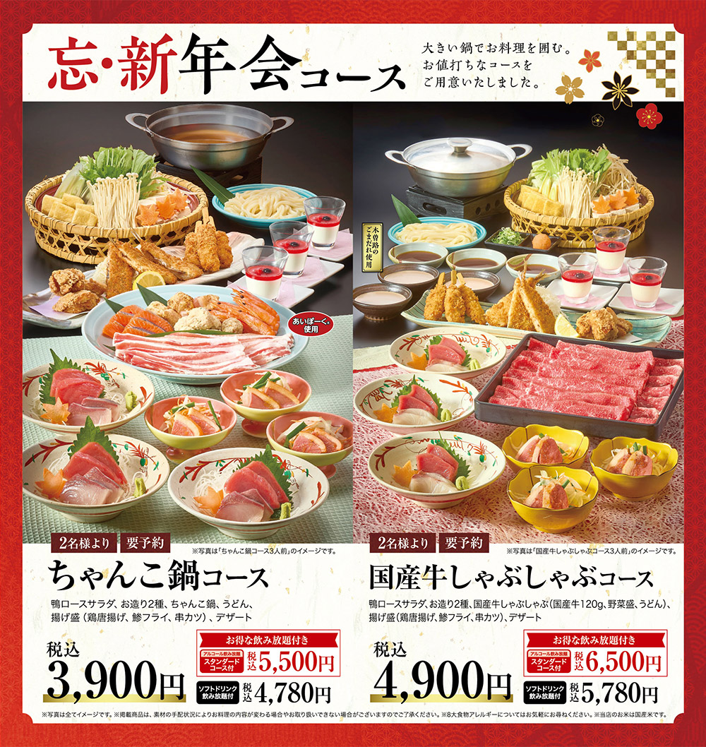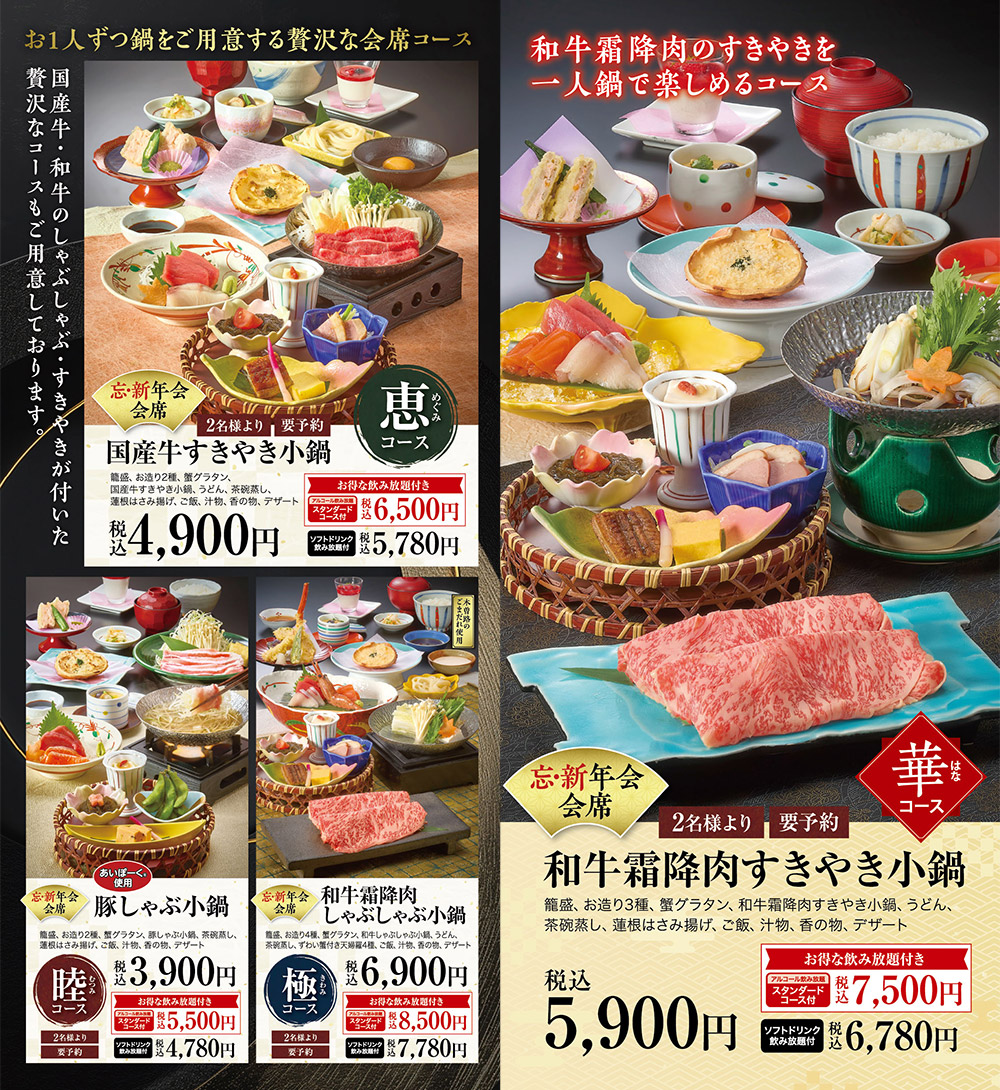少人数でもOK!満足と笑顔の宴席をおもてなしいたします。 ご予約は各店舗までお気軽にお問い合わせください。2名様よりご予約承ります。