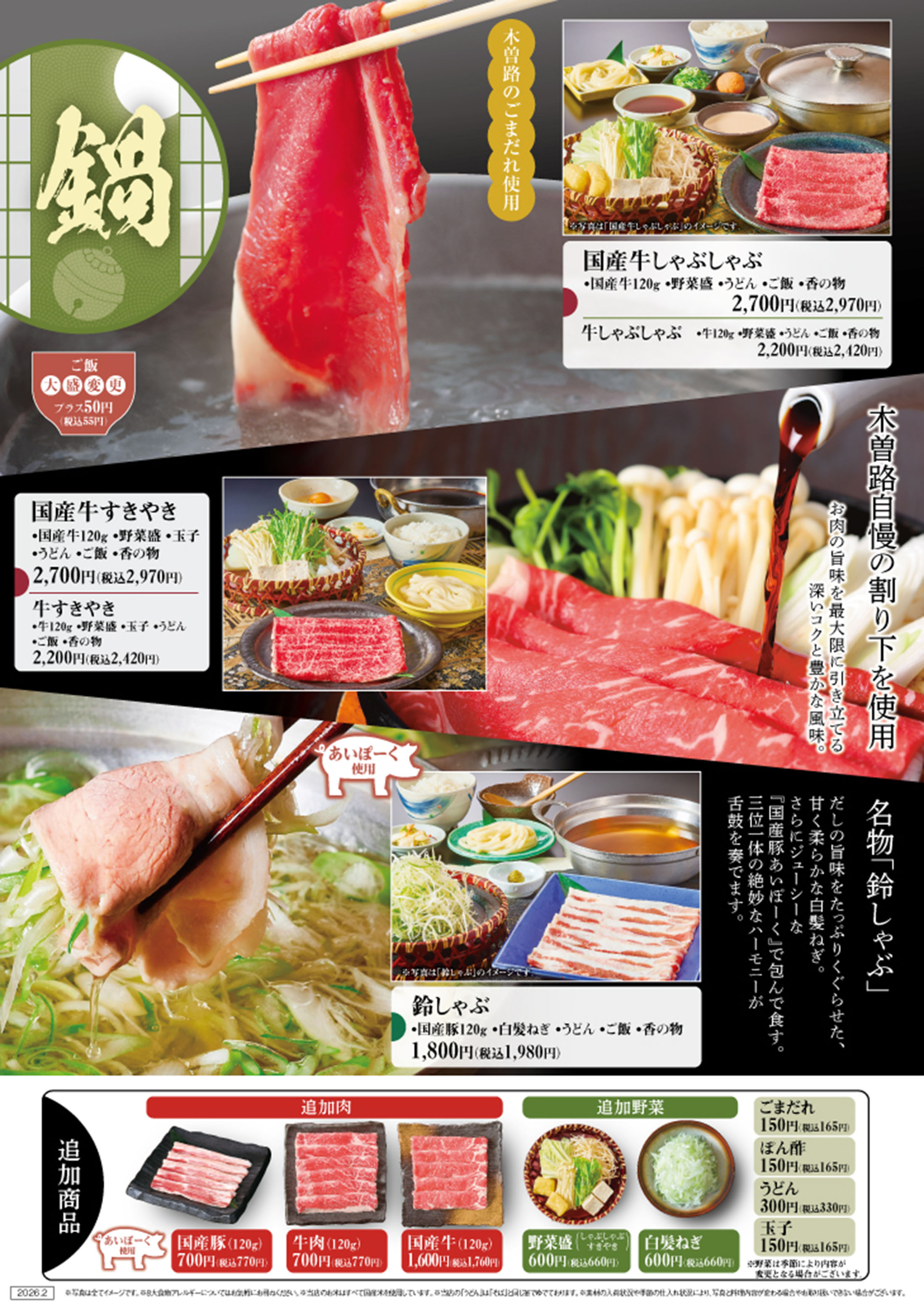 グランドメニュー / 鍋(しゃぶしゃぶ・すきやき)