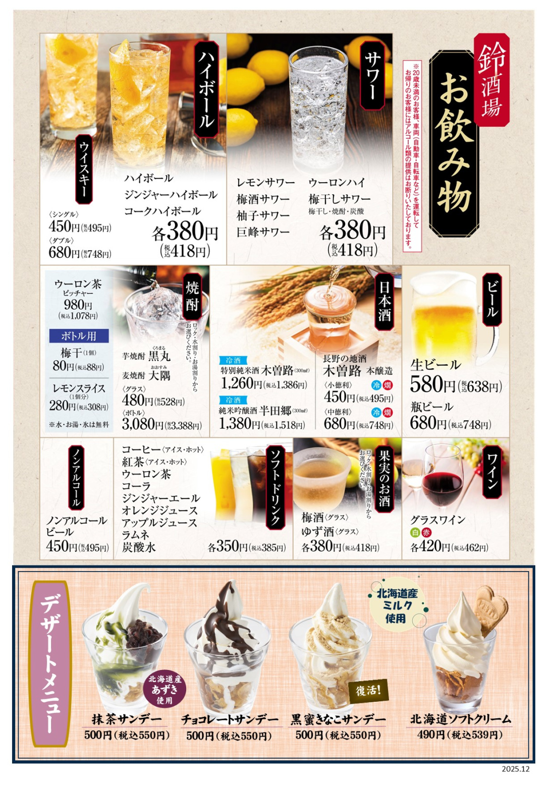 ドリンクメニュー
